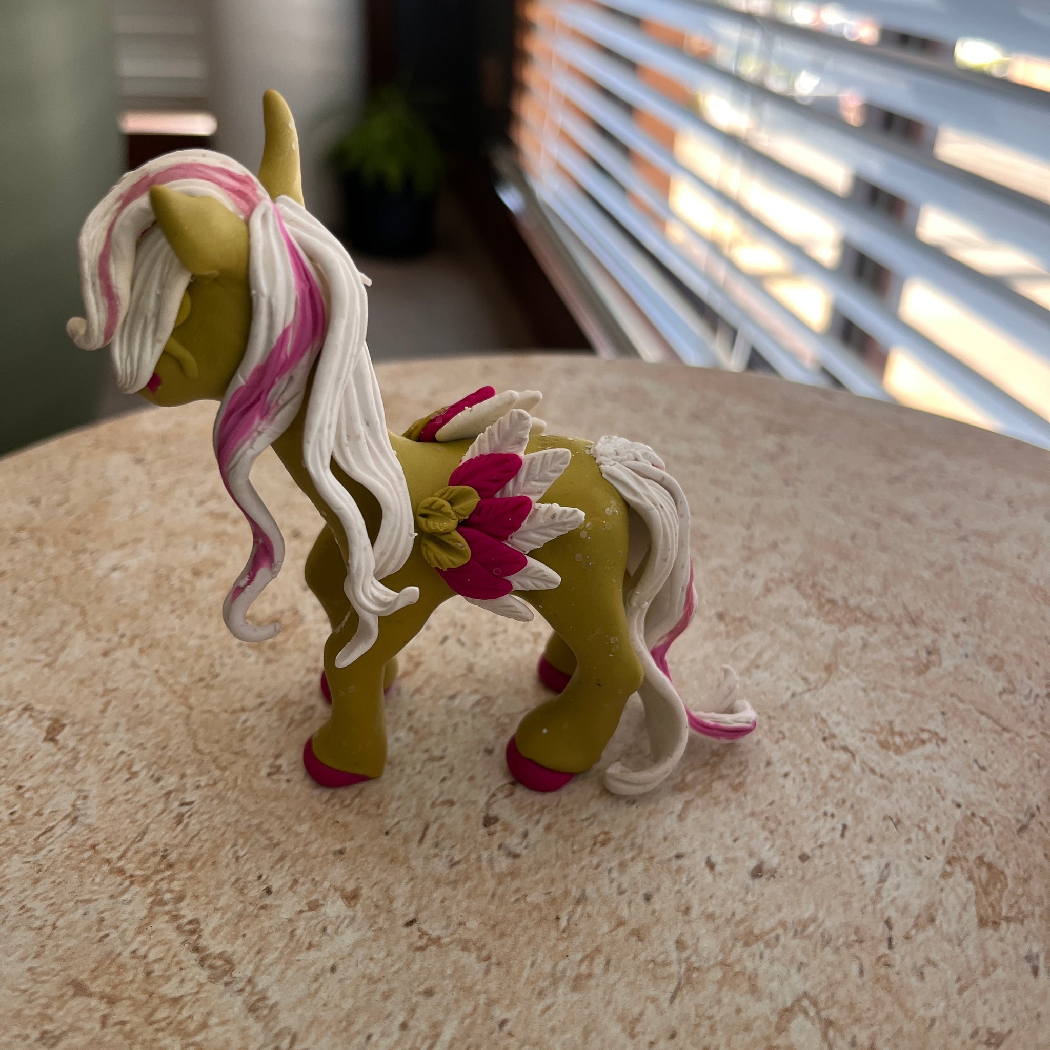 Handmade, one of a kind, pegasus figure. These little guys are not toys and are not intended for small children. We don’t want any little Pegasai or people getting hurt.