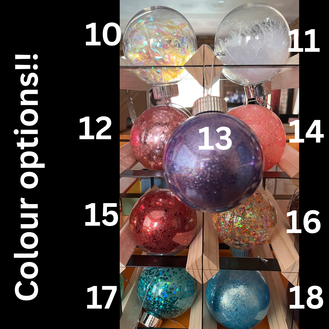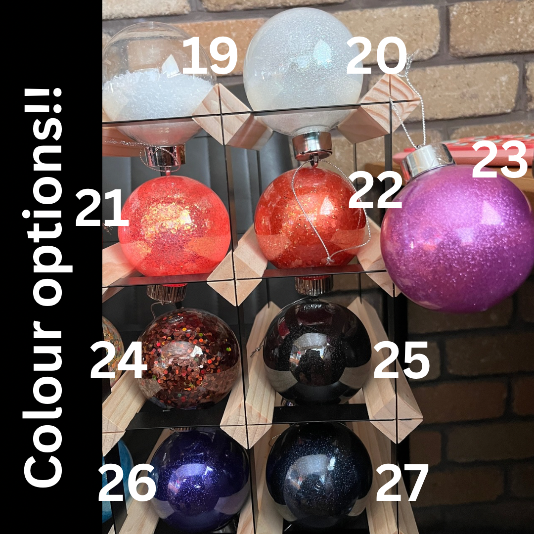 Leave me a note with the colour of bauble, name and vinyl colours you’d like.